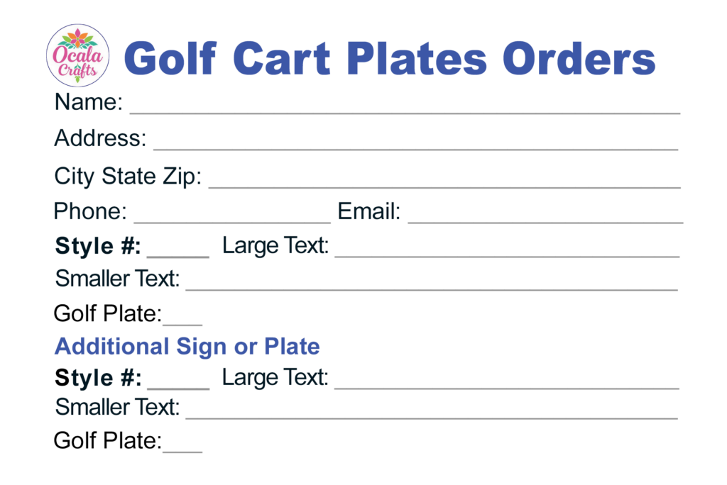 Any name tag design can be used as a golf cart plate. See info and the order form on the bottom of the page.
