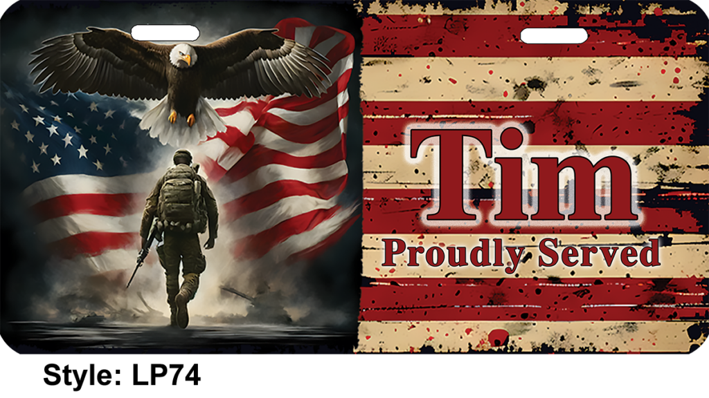 These designs are here as samples. Any name tag design can be used as a golf cart plate. Just type the name tag style number on the golf cart plate order form. Type can be what you want but please limit large type to 10 characters and smaller type to 20 characters. I will text you a graphic to approve before making your plate so you can see what it will look like.